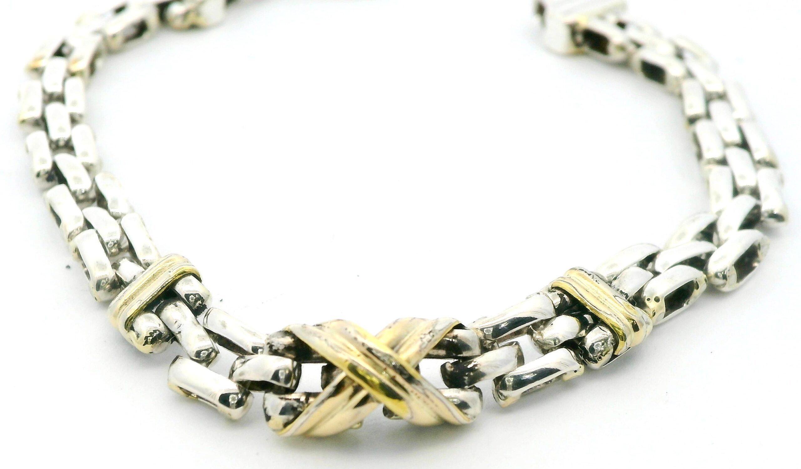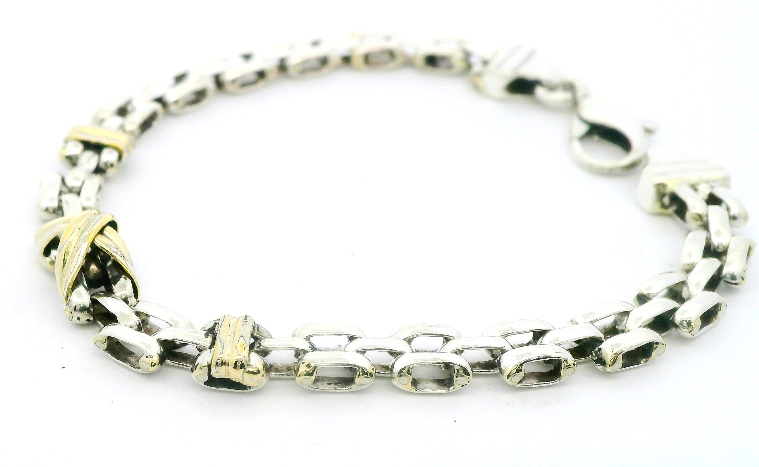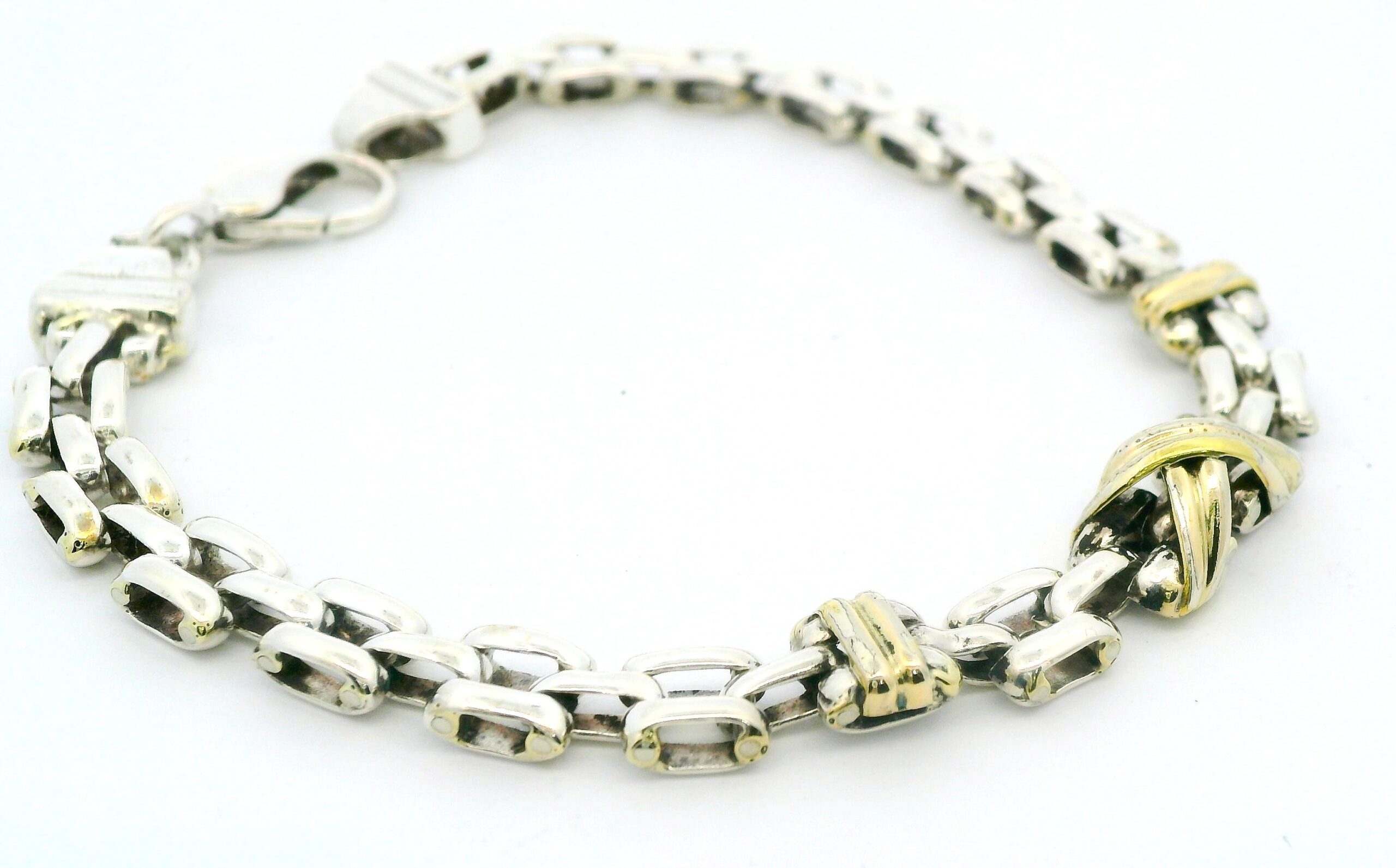 Pulsera Moderna Plata Y Oro 2 Lineas Combinada 15,1 Gr
