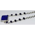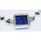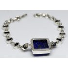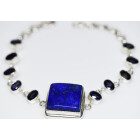 Pulsera moderna realizada en plata 925 , enorme crento de cabullon de lapiz lazuli y amatistas fascetadas.