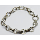 Pulsera plata 925 , sellada , modelo : roll on oval, cierre marinero , peso en gramos de la alhaja: 14,1 gr