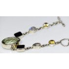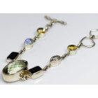 Pulsera realizada en plata 925 , con gemas naturales engarzadas , posee gota facetada de topacio central , y onix , moon stone y topacio amarillo completando el diseño.