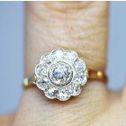 Anillo roseta antiguo , realizado en oro 18k y engarces sobre platino 950 , brillantes autenticos , peso en kilates aprox: 0,75 ct