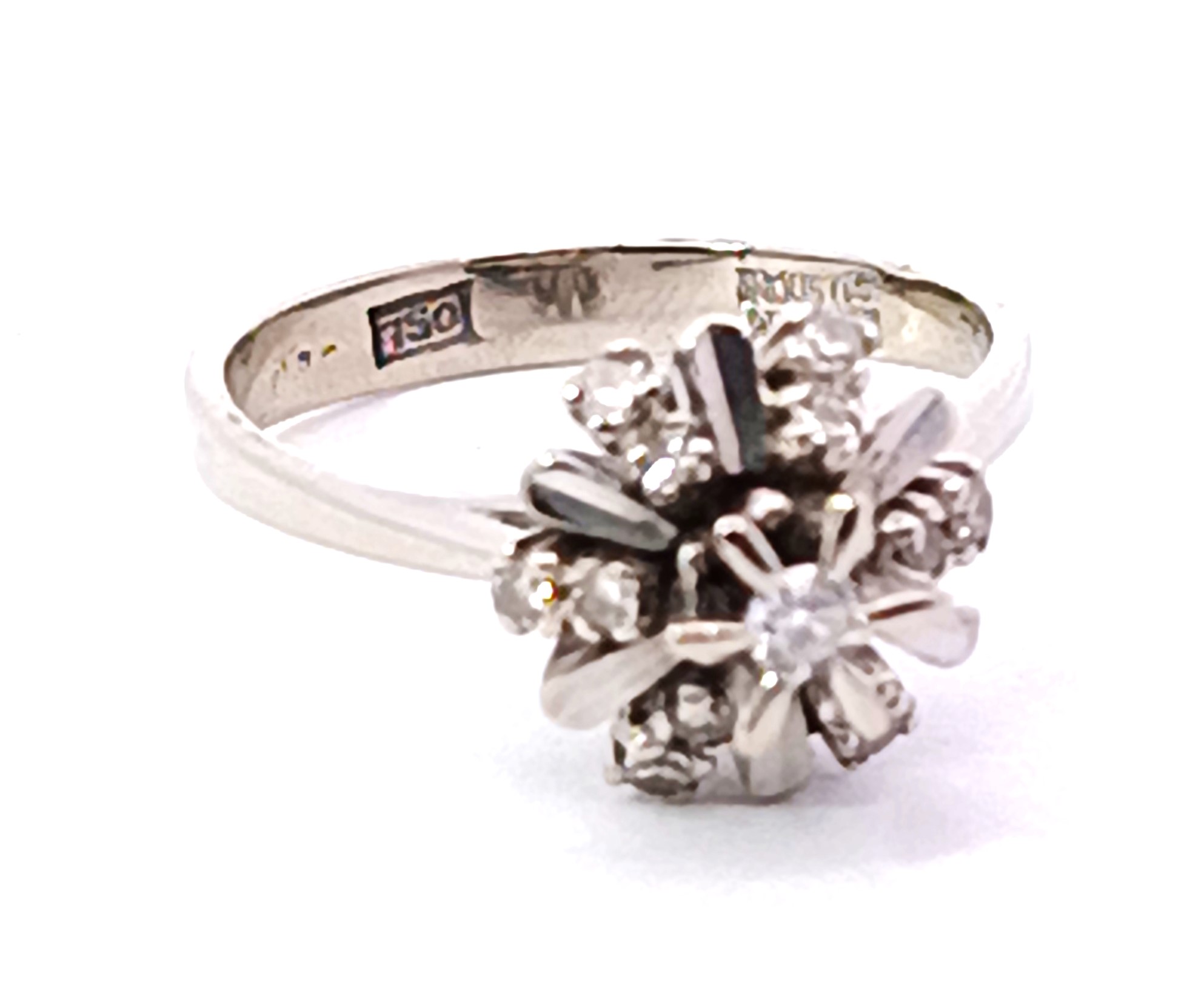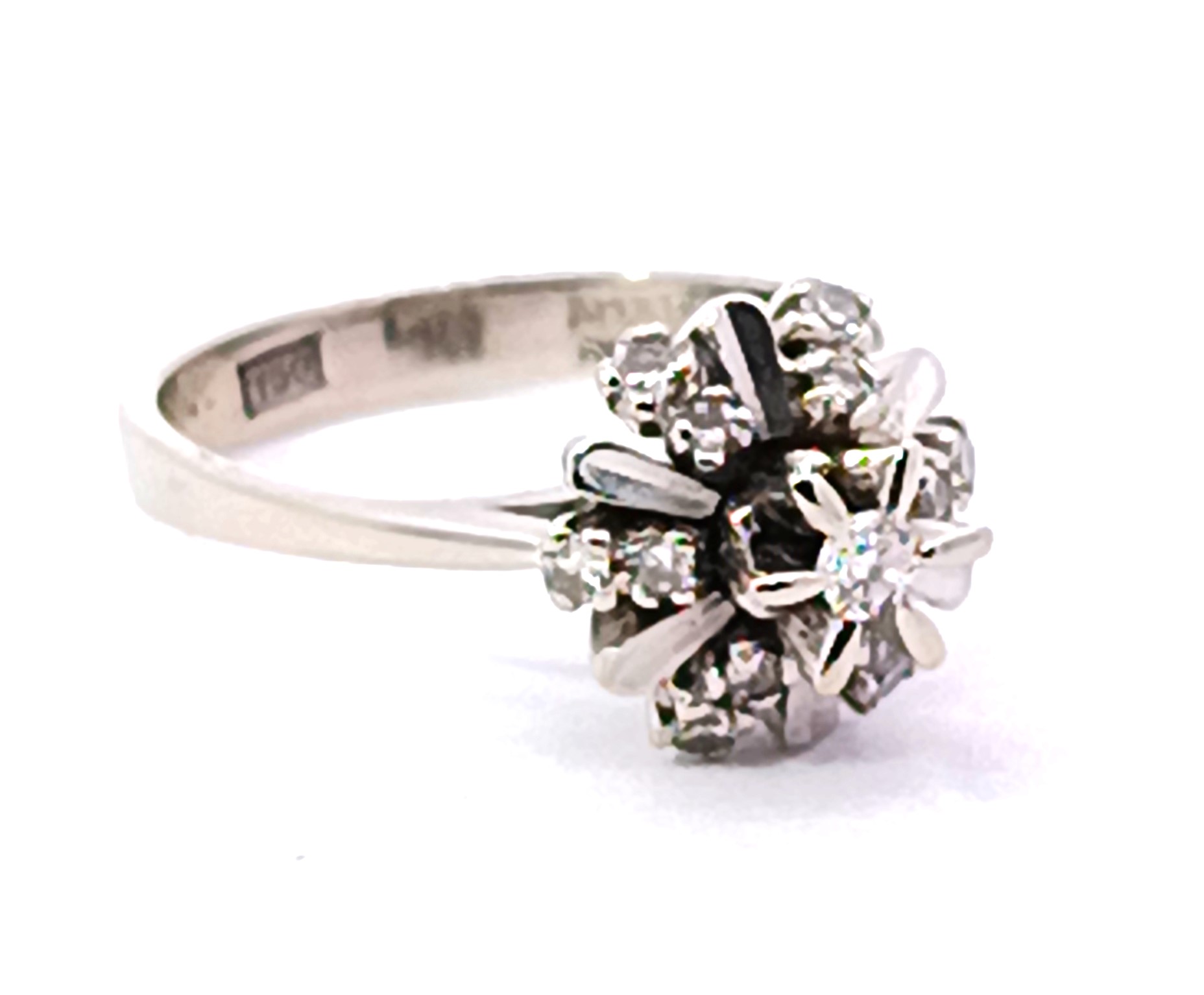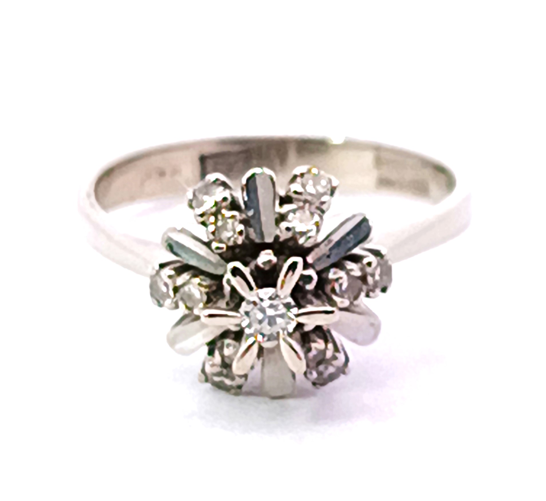 Roseta antigua realizada en oro blanco 18k , con brillantes autenticos formando una roseta.
