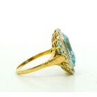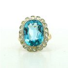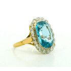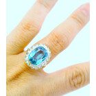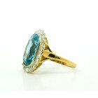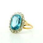 Anillo antiguo roseta , realizada en oro 18k con engarces sobre platino 950 . Posee agua marina central rodeada por brillantes rose cut.