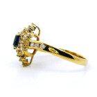 Anillo roseta moderna realizada en oro 18k . Con zafiro central y brillantes.