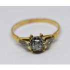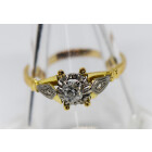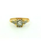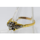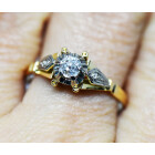 Anillo solitario antiguo, oro 18 kilates sellados y engarce sobre platino 950 , brillante central , talla antigua eurpea de maxima calidad y color , peso en kilates: 0,32 ct a ambos lados posee brillantes talla rose cut , de 0,01 ct c/u , peso en gramos de la alhaja: 2,9 gr